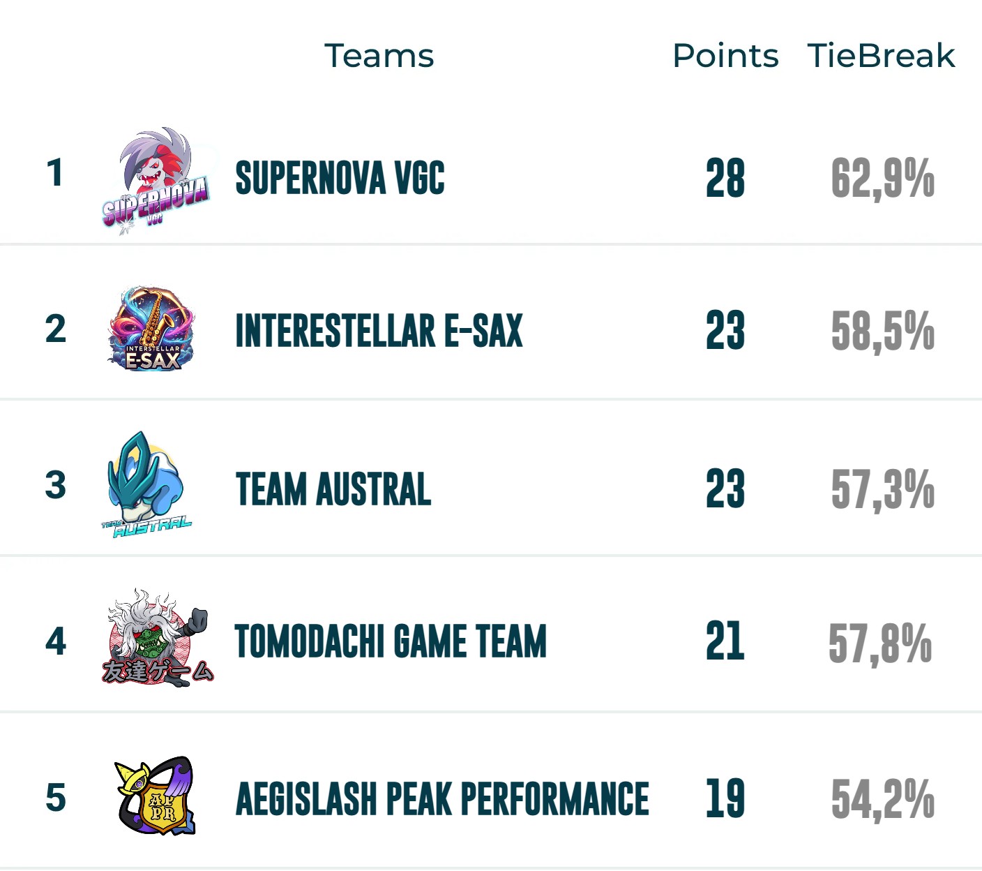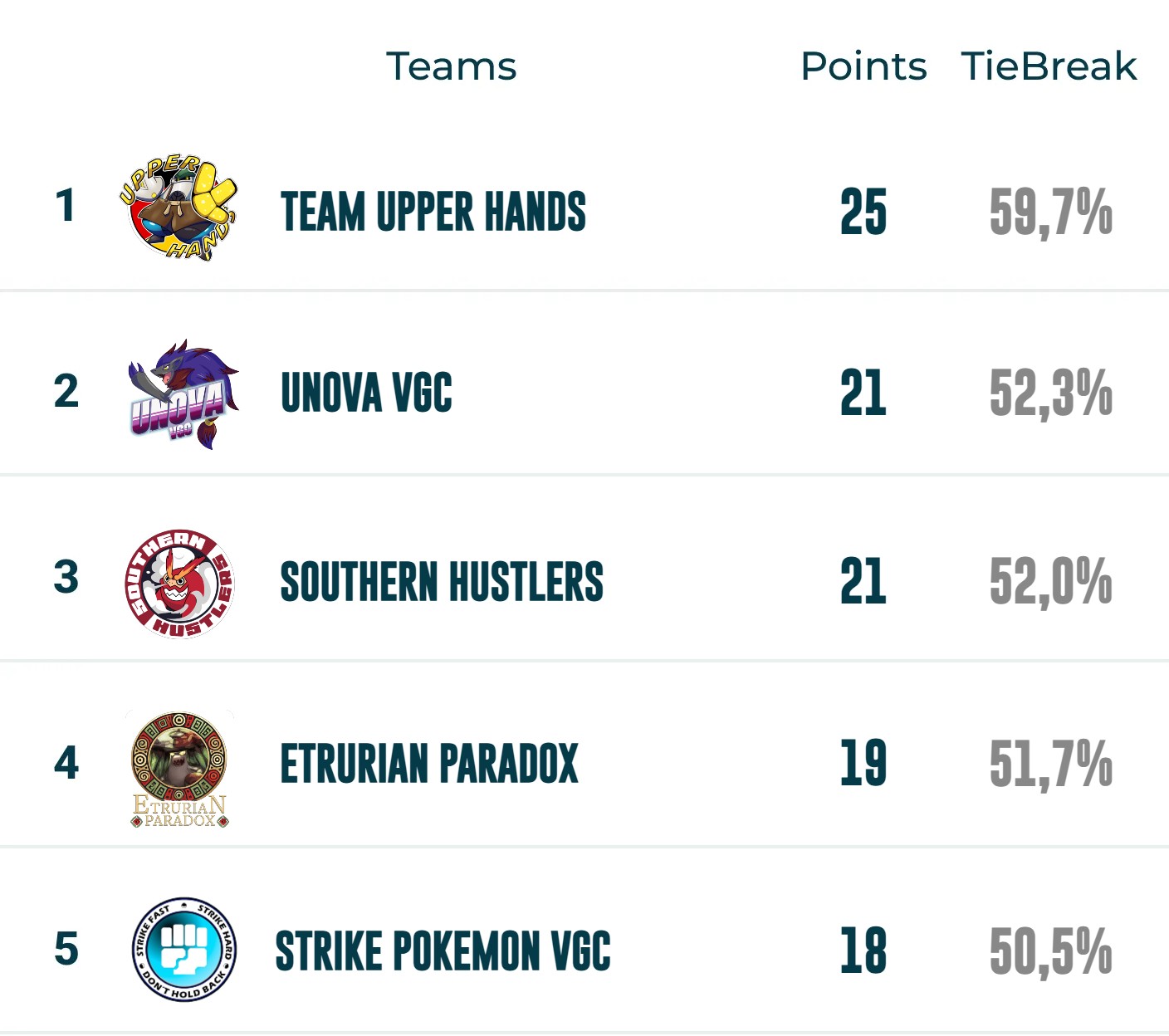 SEASON 5 STANDINGS